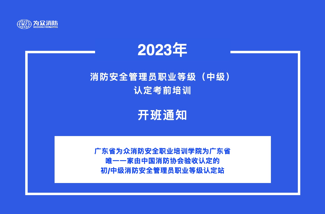 2023年消防安全管理員職業(yè)等級(jí)(中級(jí))認(rèn)定考前培訓(xùn)開(kāi)班通知