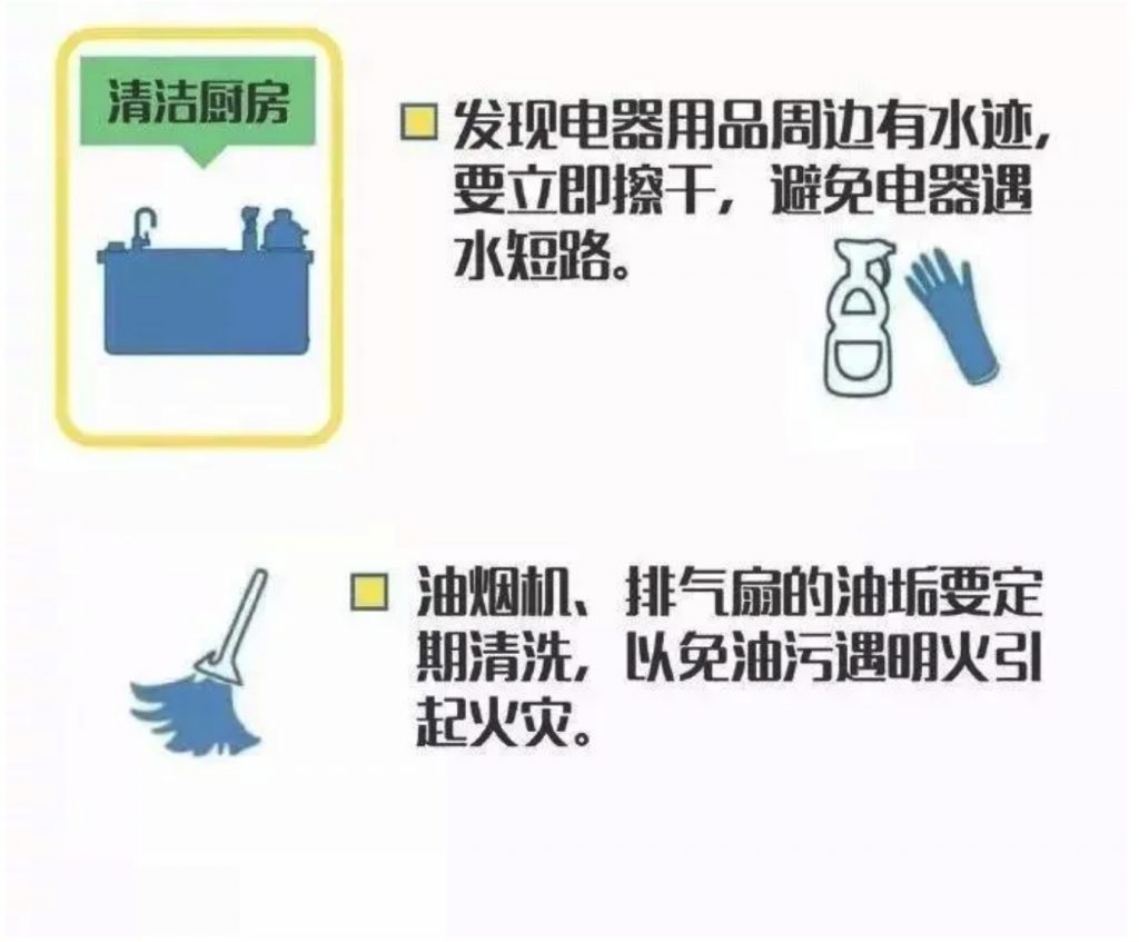 廚房設(shè)備種類(lèi)繁多,用火用電設(shè)備集中,且廚房較潮濕,使用不當(dāng),電氣線路容易造成短路。