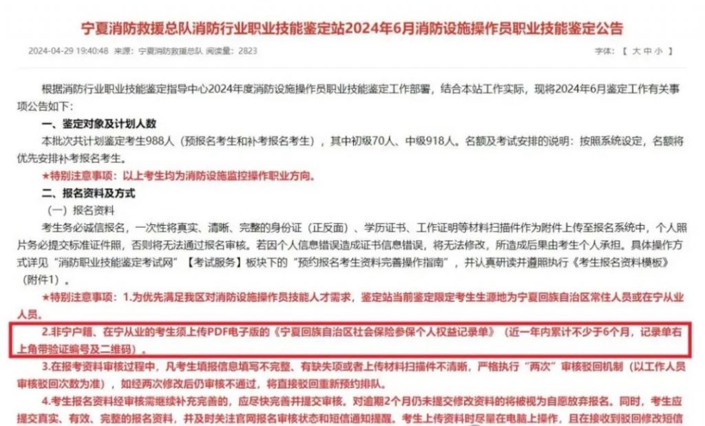 2.非寧戶籍、在寧從業(yè)的考生須上傳PDF電子版的《寧夏回族自治區(qū)社會保險參保個人權益記錄單》(近一年內累計不少于6個月,記錄單右上角帶驗證編號及二維碼)。