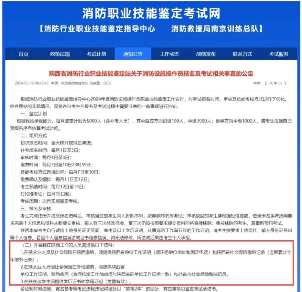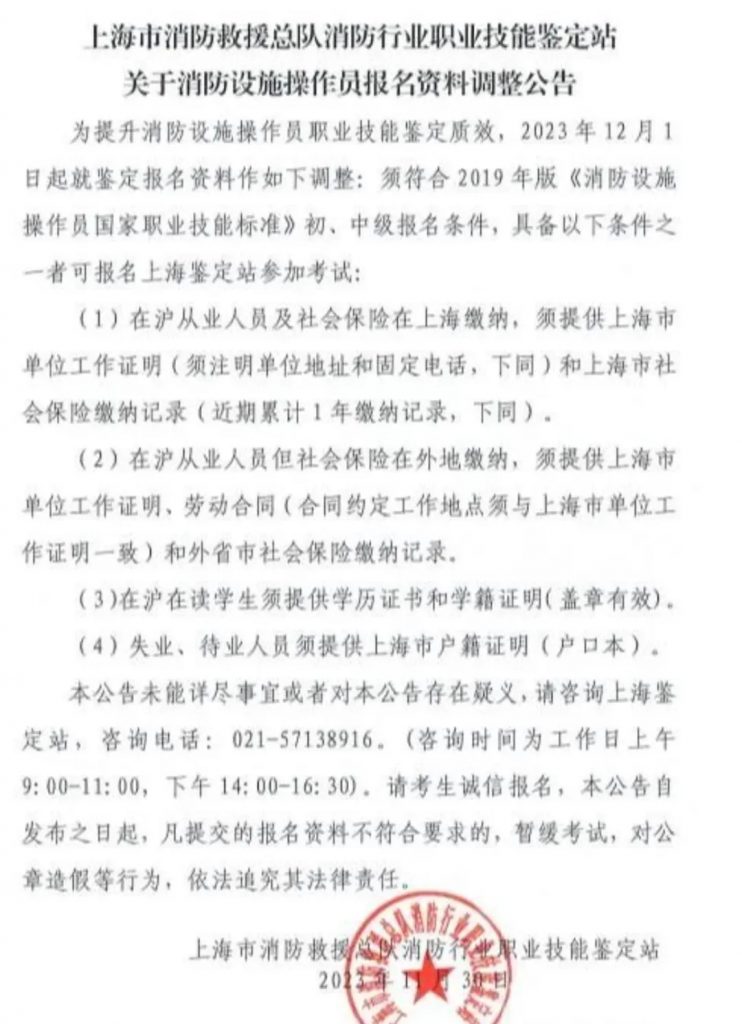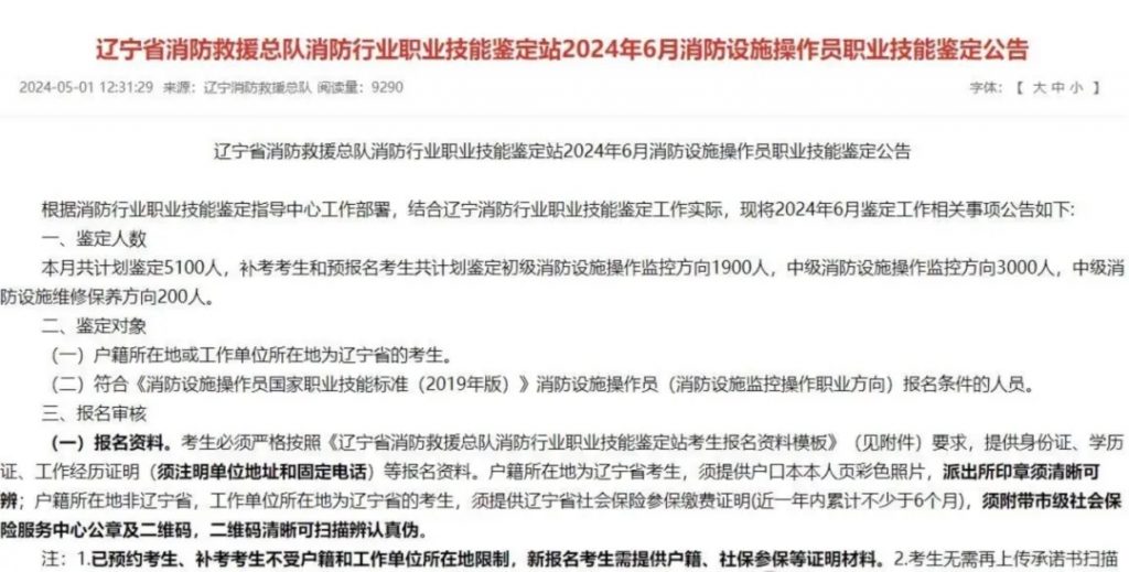 根據(jù)消防行業(yè)職業(yè)技能鑒定指導中心《關于進一步規(guī)范消防設施操作員職業(yè)技能鑒定技能考核的公告》(2024年第9號),現(xiàn)就技能考核工作具體安排和有關事項公告如下: